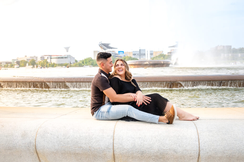 Couples who choose Washington’s Landing often want engagement photos that feel calm, romantic, and slightly tucked away — without sacrificing a Pittsburgh backdrop.