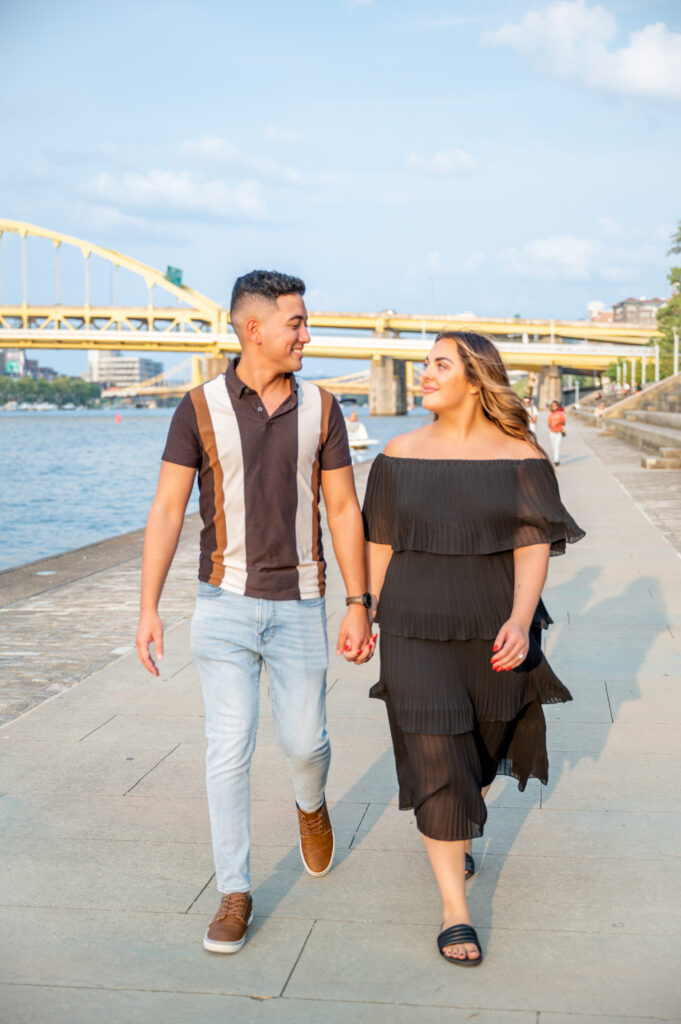 The Three Rivers Heritage Trail stretches along Pittsburgh’s rivers, offering scenic paths, changing views, and beautiful natural light throughout the day. It’s an excellent option for couples who want engagement photos that feel candid, relaxed, and lifestyle-focused.